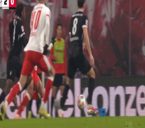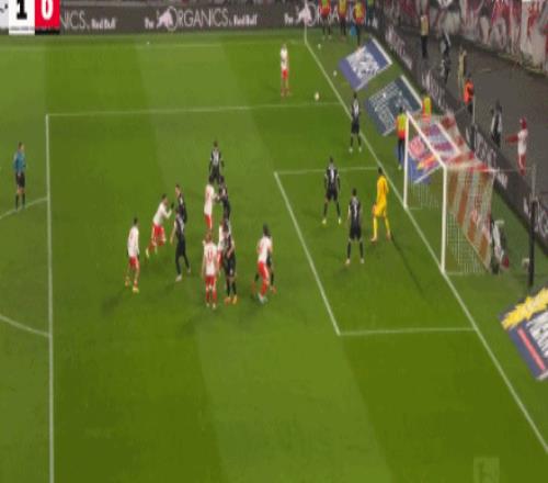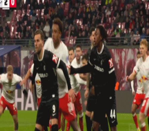 第56分鐘,鮑姆加特納頭球被撲,羅慕洛頭球補射得手!萊比錫2-0弗賴堡