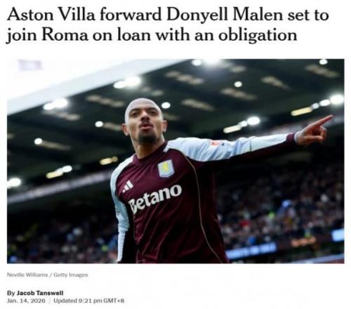 TA:馬倫租借+強(qiáng)制買斷加盟羅馬,交易總價(jià)值2700萬(wàn)歐