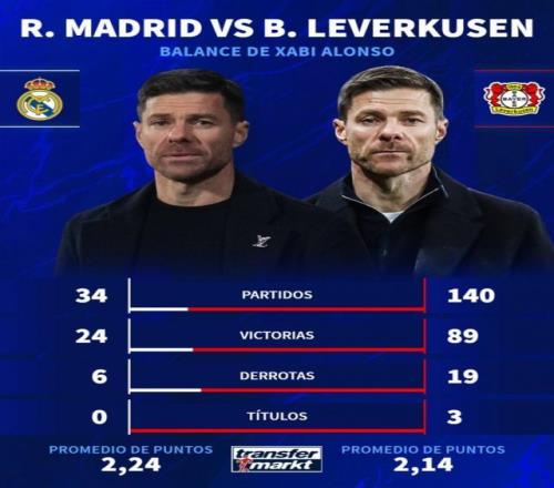 阿隆索執(zhí)教皇馬、勒沃庫(kù)森數(shù)據(jù):