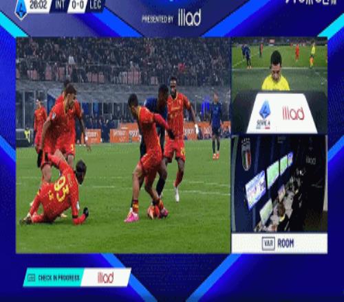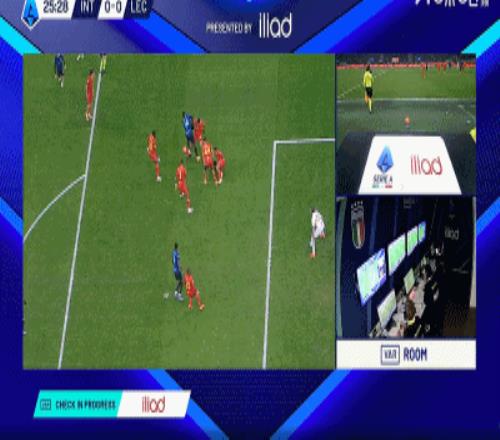 第27分鐘,博尼禁區(qū)內(nèi)倒地,裁判經(jīng)VAR后沒有判罰點(diǎn)球