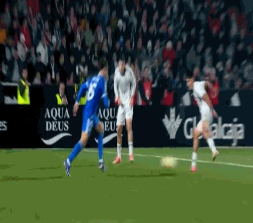 第69分鐘,皇馬開(kāi)出任意球,貢薩洛頭球攻門(mén)頂高