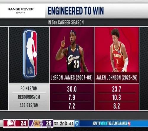 老鷹官推轉(zhuǎn)發(fā)核心杰倫與詹姆斯生涯第5季數(shù)據(jù)對(duì)比,杰倫得分遜色,但籃板與助攻均優(yōu)于同期詹姆斯。