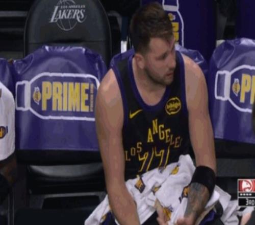 東契奇一度連續(xù)3次送出失誤,被換下場(chǎng)表情郁悶。